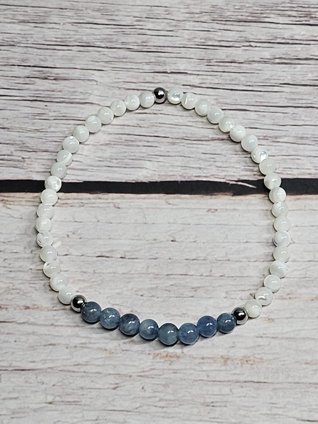 Ce bracelet associe la délicatesse de l’aigue-marine naturelle 3 mm à la douceur lumineuse de la nacre, pour une énergie subtile, apaisante et féminine. Une création fine et élégante, pensée pour accompagner celles et ceux qui recherchent calme intérieur, sensibilité équilibrée et sérénité émotionnelle au quotidien.