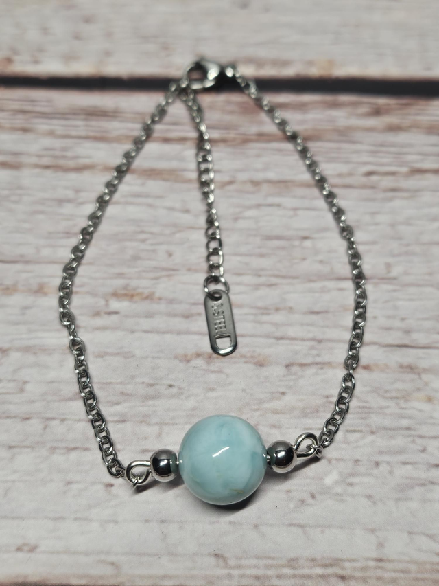 Le larimar est apprécié pour son aspect doux et tropical, tandis que l’acier inoxydable assure durabilité et confort. Le bracelet envoyé correspond exactement à celui présenté.