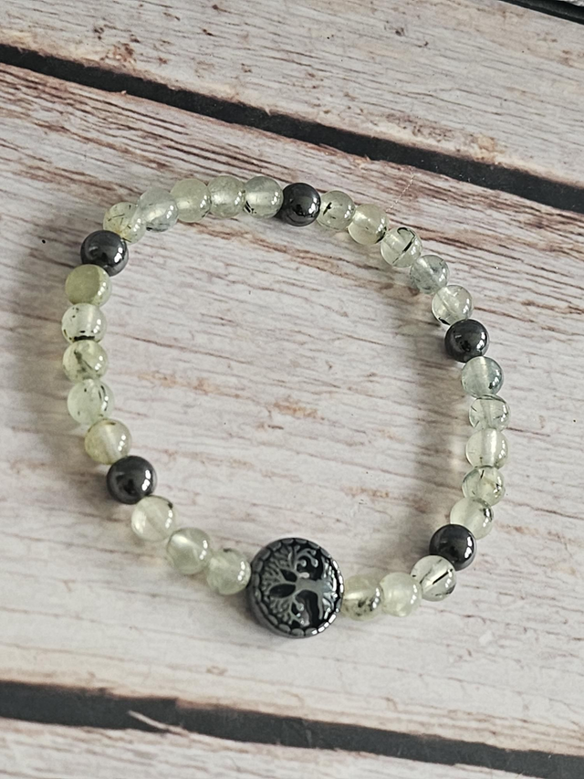 Bracelet en Préhnite & Hématite – 6 mm