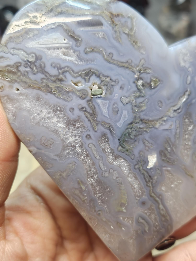 L’Agate Mousse est une pierre de renouveau et de vitalité. Reliée à la Terre et au monde végétal, elle apporte équilibre, sérénité et confiance. Elle favorise la croissance personnelle, l’ancrage et la stabilité émotionnelle, tout en encourageant la connexion avec la nature et ses cycles. Ses énergies douces aident à relâcher le stress et à cultiver l’optimisme au quotidien. En forme de cœur, elle amplifie ses vibrations d’amour, de bienveillance et d’harmonie. Associée à Déméter, déesse grecque de la fertilité et des moissons, elle incarne la régénération, l’abondance et l’union avec la Terre.
