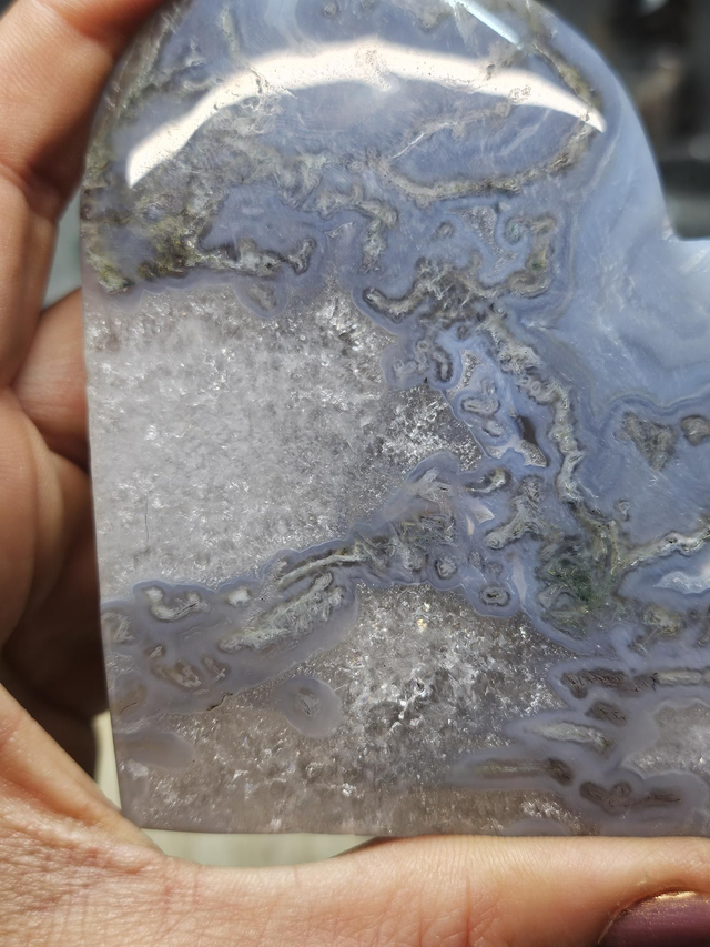 Cœur "Déméter" – Agate Mousse – 11,5 × 9,5 cm – Socle à part
